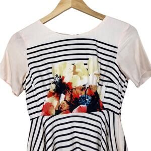 Corey Lynn Calter Floral Stripe Mixed Print Handkerchief Hem Dress Size 0