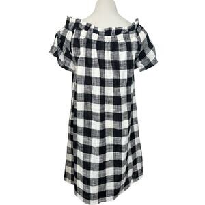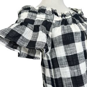 Corey Lynn Calter Gingham Off The Shoulder Linen Blend Dress Black White Medium