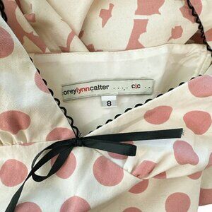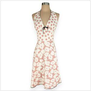 Corey Lynn Calter Ivory White Pink Polka Dot Floral Halter Dress Black Lace 8
