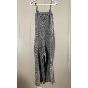 Corey Lynn Calter Jumpsuit Small • Gray Botanical Leaf Print • Wide Leg Linen Bl