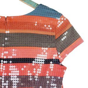 Corey Lynn Calter Round Neck Full Sequin Multi-Color Striped Shift Dress, Sz 0