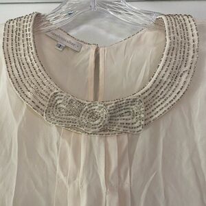 Beaded bow collar, a little pleating in the front, sleeveless blouse