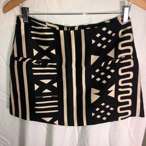 Corey Lynn Calter Womens Mini Straight Skirt Black Beige Geometric Silk
