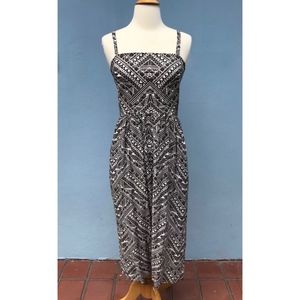 This is a great, cool dress-up or dress-down midi 2-pocket sundress by Corey Lynn Calter for Anthropologie, with an abstract/geometric brown and white print. Worn once. The straps criss-cross and are attached with buttons at the back. The bodice is lined; the skirt is not. The pockets are sewn into the sides, giving a bit more volume at the hip. Viscose rayon.