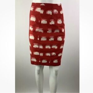 Corey Lynn Calter Sz 2 Cotton Linen Graphic Print Pencil Skirt Red White