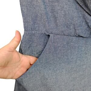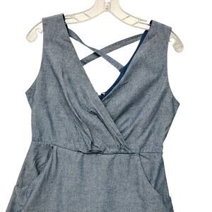 Corey P Chambray Faux Wrap Dress Size Small Light Blue Sleeveless Zipper on Back