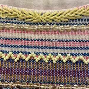 Beautiful top embellished with bead and sequin detail. Perfect with jeans, cut off shorts. Semi sheer lower half (note pics).