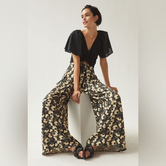 Corey Lynn Calter Floral Pleated Wide Leg Pants, sold at Anthropologie