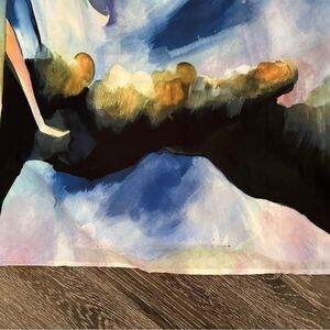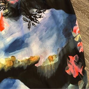 New with tags. You may see navy speckles on this dress that at first glance look like it may be a stain but it is part of the prints the dress is intended to look like a water color painting