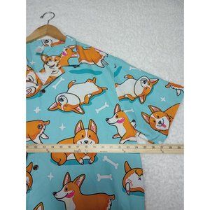 Corgi Dog Blue 3D Hawaiian Style All Over Print Shirt Size XL EUC