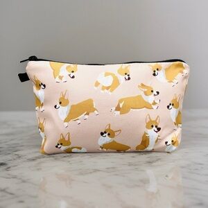 - This Corgi Dog Print Makeup or Pencil Case is an ideal way to store and organize your cosmetics and stationery. Crafted from polyester material fabric, this zipper pouch offers a spacious 8” opening width and 4.6” height to fit all of your items.