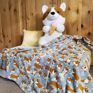 Handmade Corgi 54"x60" Anti Pill Fleece Throw Blanket.