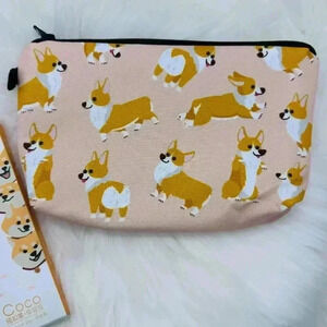 Corgi Print Makeup Pencil Case with Pens and Sticky Note pad