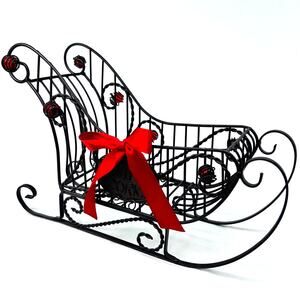 This great metal Cork Cage Sleigh says "Wine Corks" on one side and is embellished with red glass accents and red satin bow. Fill it with corks or a standard size wine bottle.