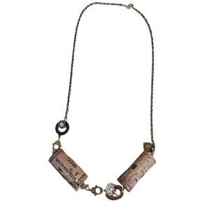 Cork Hamsa Hand Steampunk Bronze Heart Necklace