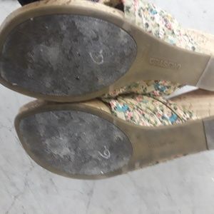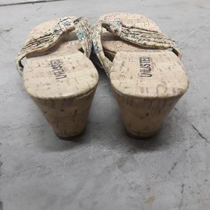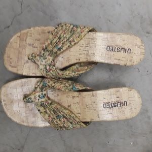 Nwot cork wedge flip flops with floral fabric strap. Never worn size 9. Unlisted by Kenneth Cole