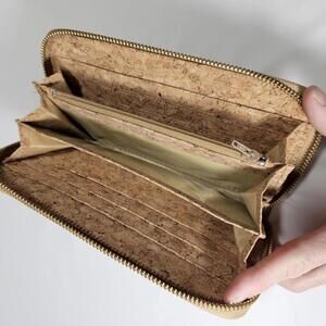Cork lightly used. You can feel  indents when you hold it. See all photos. So many good compartments inside and credit card slots.