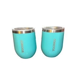 Corkcicle Stemless Wine Glass 12 oz Turquoise Sparkle Stainless Tumbler With Lid Set of 2