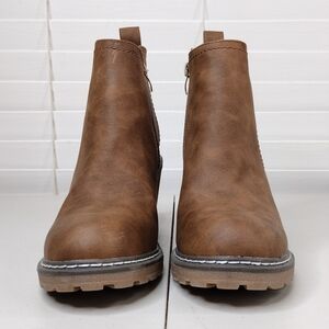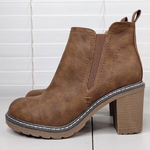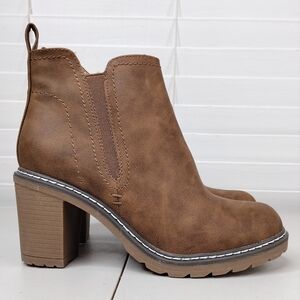 Corkys Bite Me Brown Boho Side Zip Stacked Heel Ankle Boots Sz 7