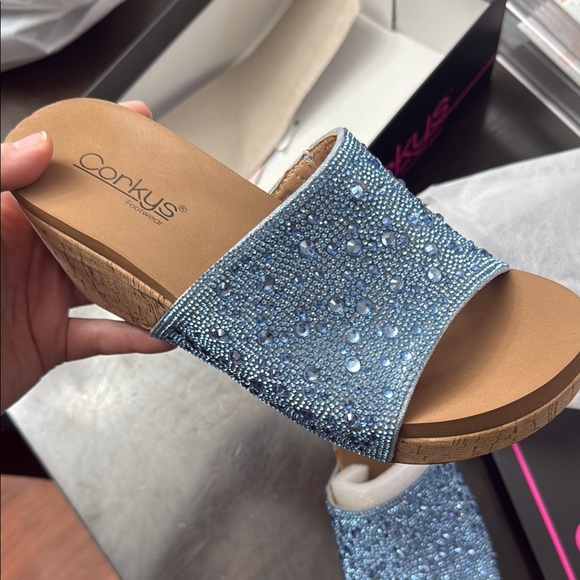 Corkys Blue Rhinestone Wedges