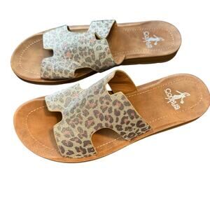Corkys Bogalusa Leopard Slide Casual Sandals - size 8 - D23
