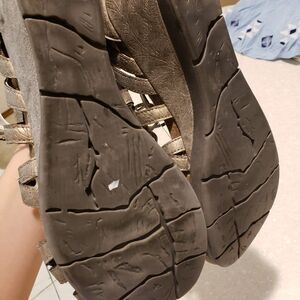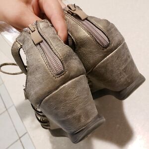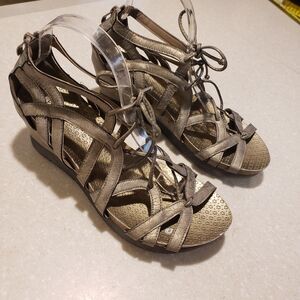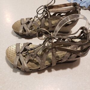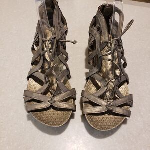 Corkys Boutique LACE Metallic Gunmetal Silver Wedge Gladiator Sandals Womens 10