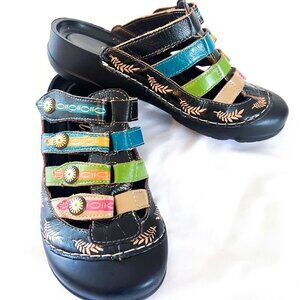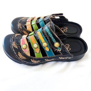 Corkys Elite Heidi Hand-painted Leather Mules Sandal Bump Toe Womens