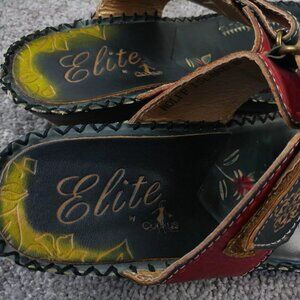 Corkys Elite Sandals Womens 8 Shoes Wolff Island Leather Thong Black Red