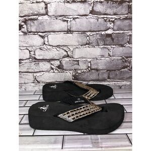 Corky’s Gold Crystal Rhinestone Thong Foam Wedge Sandals Women’s Sz 11M US/42EU
