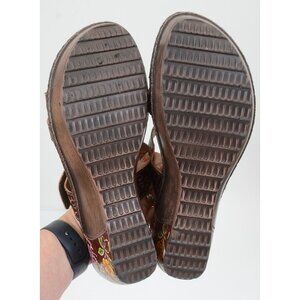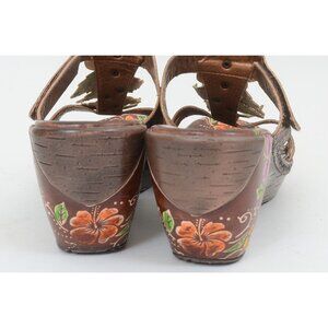Corkys Hand Painted Floral Leather Slip-On Wedge Heel Sandal Boho Colorful Sz 10