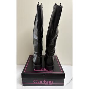 Corkys Hay There Black Tall Riding Boots Women’s Size 9 Side Zip Buckle Strap