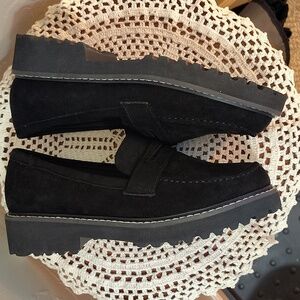 Corkys Hey Girl Loafers Size 8 Black Suede White Stitching NWOB