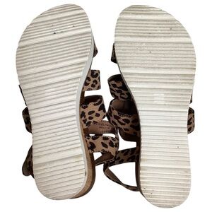 Chic Corkys sandals with leopard straps. Perfect for casual outings. Size 7