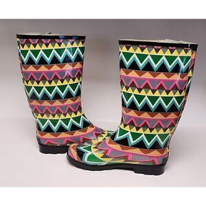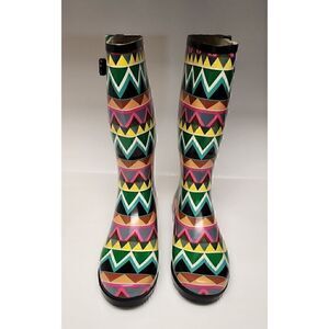 Corkys Shoes Women's Sunshine Multi Color Chevron Print Rain Boots Size 10.