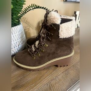 Corkys Squad Brown Sherpa Trim Lace Up Boots Size 7