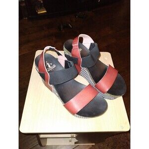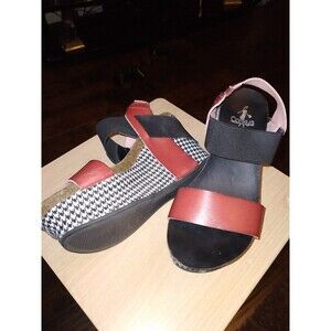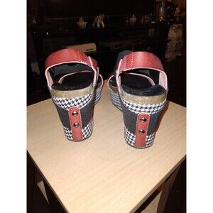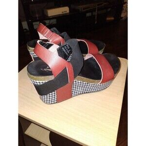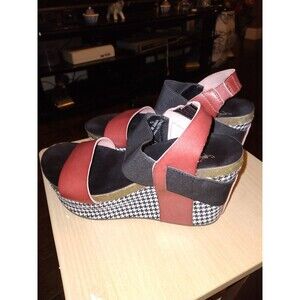 Corkys Wedge Sandals Platform Houndstooth Accents Red Black Size 6