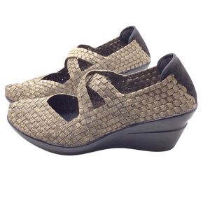 Corkys Womens Bronze Wishbone Woven Comfort Stretch Slip-on Wedge Shoe Size 9. Very good condition with minimal wear. From smoke free home.