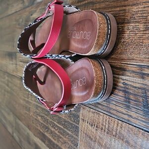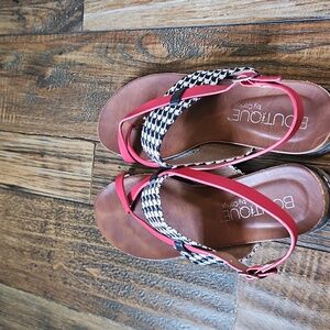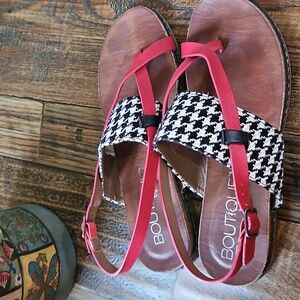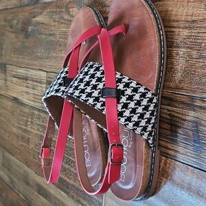 Corkys Women's Red Leather And Black & White Houndstooth Thong Sandals. Size 38