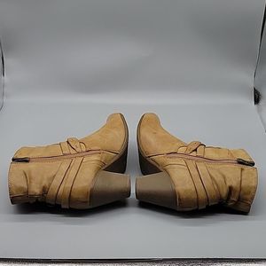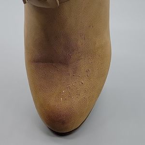 Adorable ankle booties in camel tan. Boots show little wear. the left boot has some leather bumps.