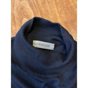 Corneliani Made in Italy Dark Navy Blue Melange Knit Wool Mockneck Sweater 48