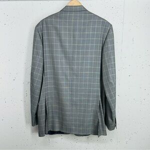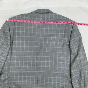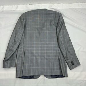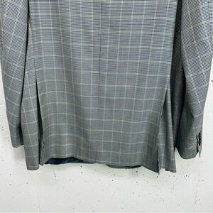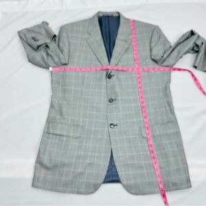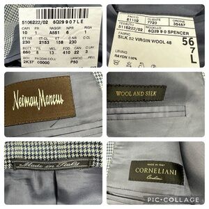 Corneliani Men's Size 56L Spencer Virgin Wool Silk Blue Micro Houndstooth Plaid Suit 3 Button Jacket in good preowned condition no pilling.