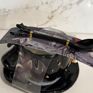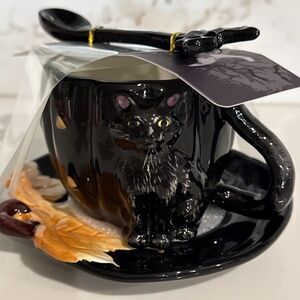 Corner Ruby Black Cat Pumpkin Tea Cup & Saucer With Bat Spoon
