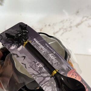 The Corner Ruby Black Cat Pumpkin Tea Cup & Saucer with Bat Spoon is a collectible set perfect for serving tea during Halloween. The black color and Halloween theme make it a spooky and festive addition to your kitchen or dining room. This set includes a tea cup, saucer, and spoon, making it ideal for enjoying a special tea time experience on the holiday.
