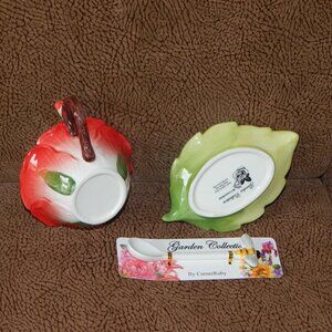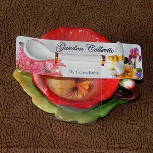 Corner Ruby Garden Collection Poppy Red Flower Teacup Leaf Saucer Spoon Set NWT