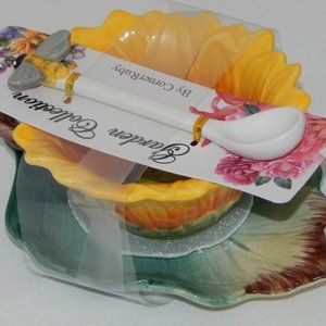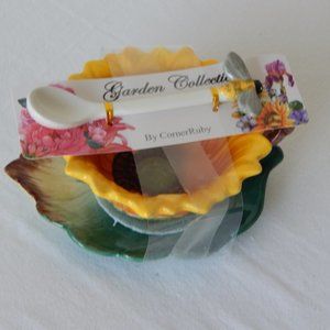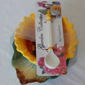 Corner Ruby Garden Collection Yellow Sunflower Shaped Cup Leaf Saucer Spoon Set