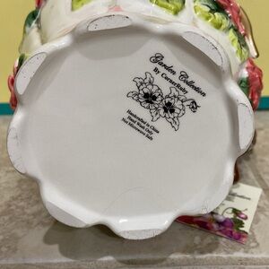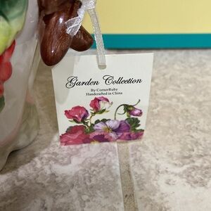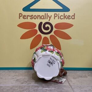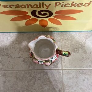 Corner Ruby pitcher. Pitcher has raised pink bow with flowers surrounding it. Part of the Garden Collection by Corner Ruby. Brand new!