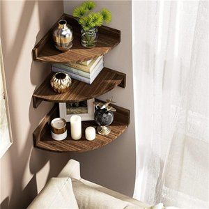 Corner Shelf Wall Mount, Set of 3 Floating Shelves for Wall Storage (Dark Brown)