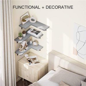 🧿Complements Any Room: The beautiful wood grain of our corner shelf fits in well with any décor. Whether you need to add wall shelves to your modern bedroom or utilize a corner in your traditional living room, the attractive design will look great with your style.