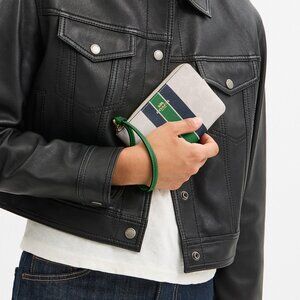 Corner Zip Wristlet In Signature Canvas With Varsity Stripe