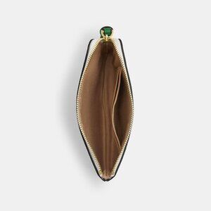 Signature coated canvas Two credit card slots Zip-top closure fabric lining Wrist strap attached 6 1/4 (L) x 4 (H) x 1/2 (W) Style No. CBP19